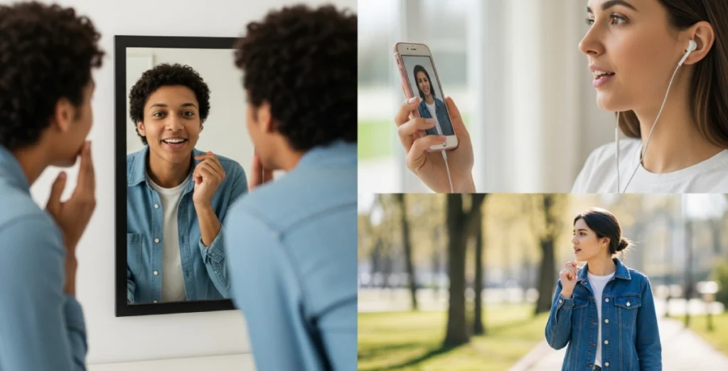 - Use “Shadowing” Technique : Repeat after speakers in videos or podcasts immediately.